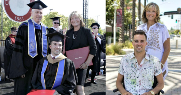 Мајка доби почесна диплома откако присуствувала на секое предавање на својот квадриплегичен син за тој да може да дипломира.