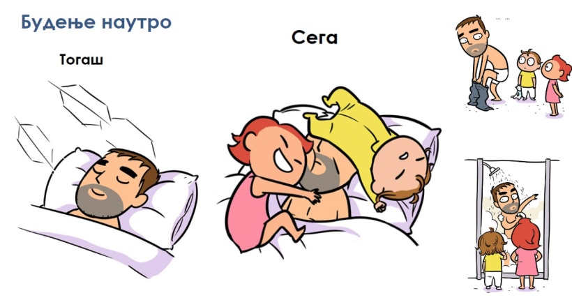 Со стекнувањето на улогата на татко, маж ѝ се збогувал со со приватноста, релаксираните викенди, романтичните моменти во спалната соба и мирниот сон, а им посакал „добредојде“ на хаотичниот дом и дружбите со малите палавковци.