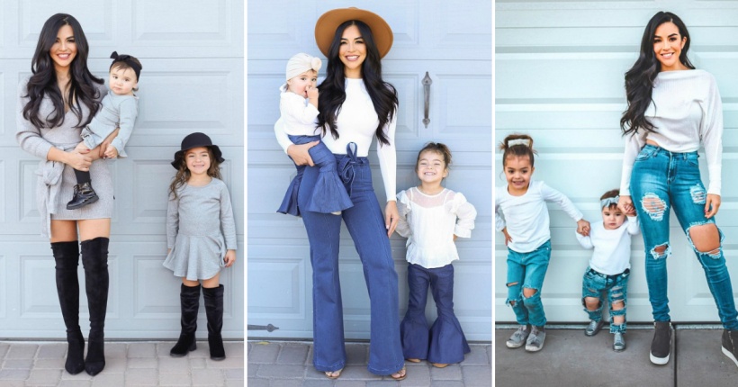 Мајка се облекува складно со двете ќеркички и привлекува обожаватели со модните комбинации