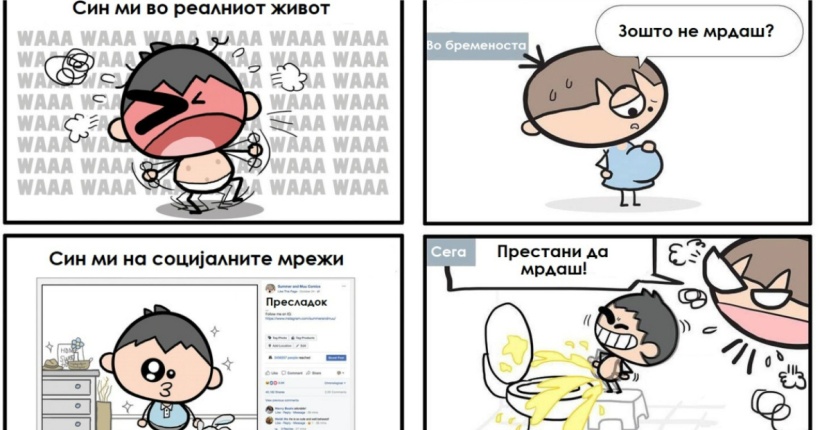 Во своите цртежи таа доловува моменти со малиот син кои ќе им бидат познати на мајките, а и на татковците.