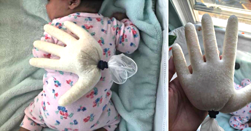 Па, доколку одлучите да го пробате овој трик, добро е постојано да го надгледувате вашето бебенце или да се обидете да го легнете на грб, а ракавицата да му ја поставите во областа на пелената и мешето.
