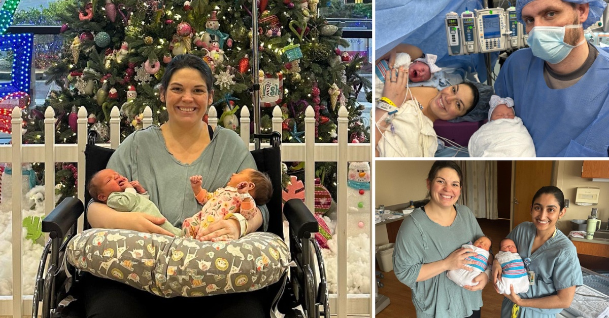 Мајката која во двете матки носеше по едно бебенце се породи и позираше со новороденчињата