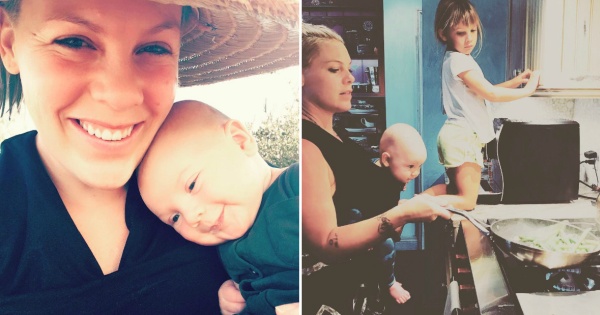 Мајки застанаа во одбрана на Пинк која беше критикувана за фотографија на која готви додека ги чува децата