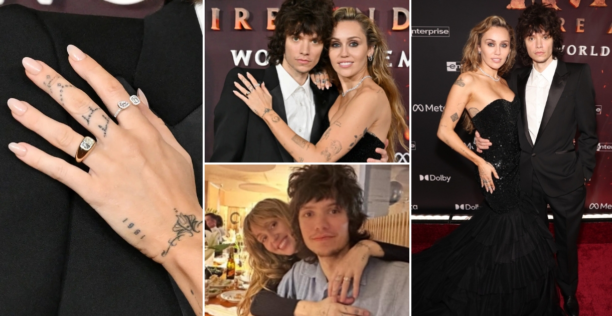 33-годишната пејачка поттикна гласини за веридба со појавувањето на црвениот тепих на премиерата на „Avatar: Fire and Ash“, кога беше фотографирана со дијамантски прстен на раката. Сајрус со широка насмевка позираше покрај 27-годишниот музичар.