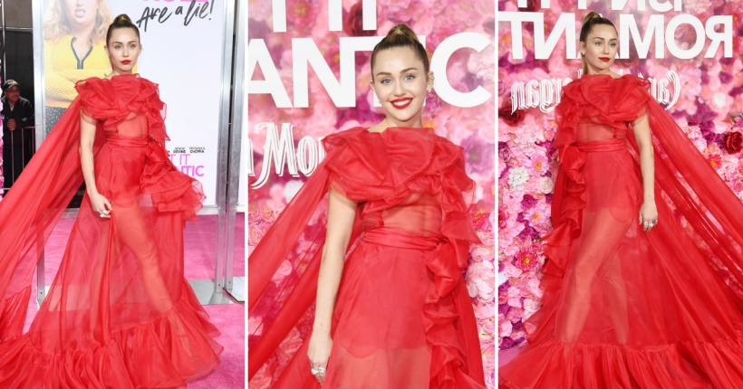 Мајли Сајрус во црвен фустан на премиера на филмот на сопругот Лиам кој отсуствуваше поради здравствени проблеми