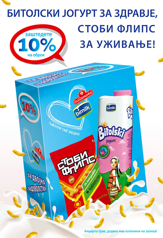 Продадени се неверојатни 100 тона јогурт и 4 тона флипс за време на акцијата на Битолска Млекара и Витаминка со спојување на брендовите Битолски јогурт и Стоби флипс!