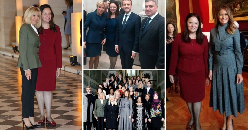 Нашата прва дама носеше борда комбинација за средбите со први дами од целиот свет во Версајскиот дворец.