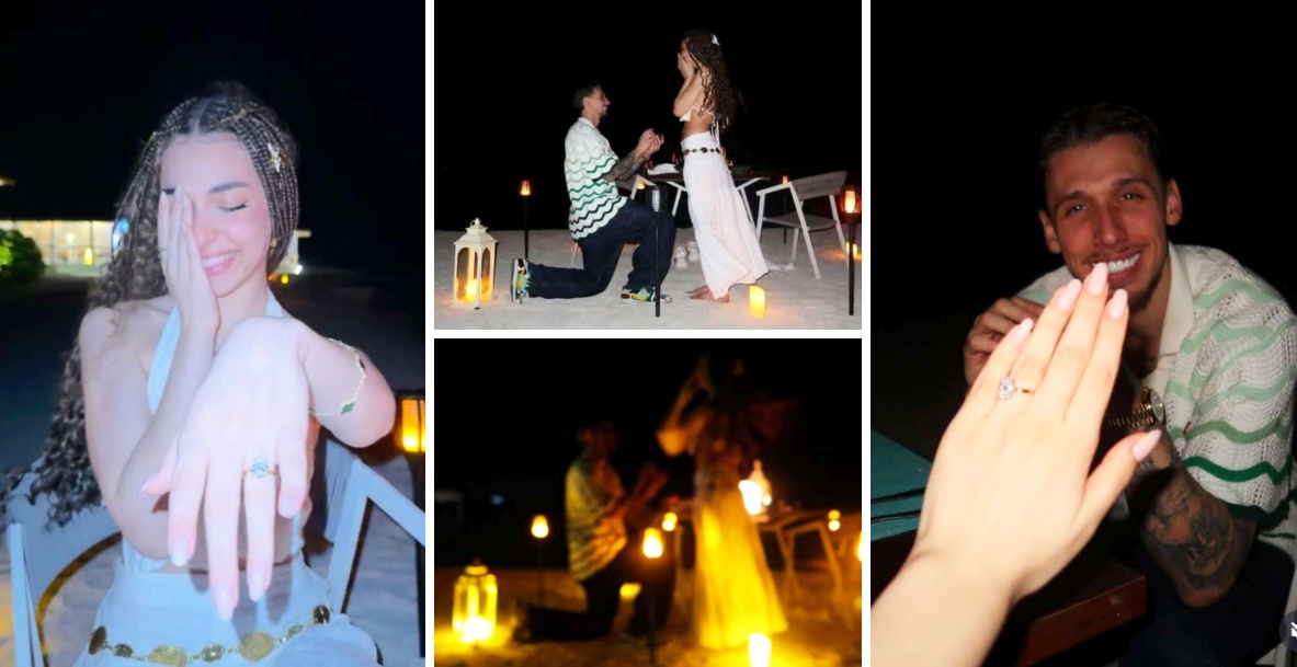 Нашиот репрезентативец ја изненади својата избраничка со романтичен предлог за брак на плажа за време на нивниот одмор на Малдиви.