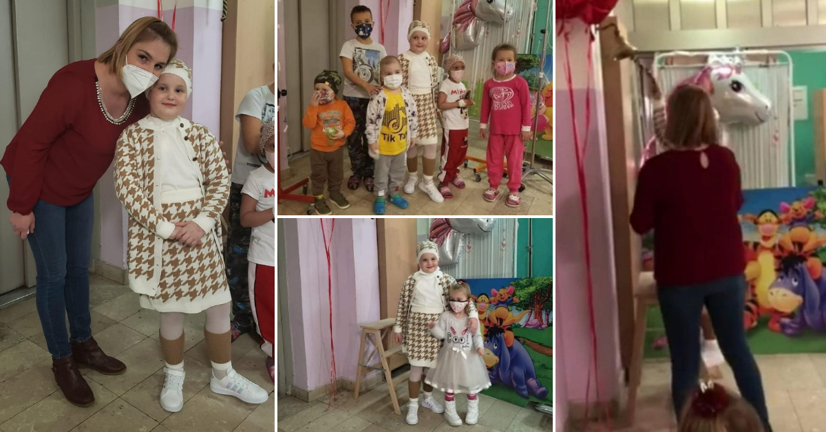 Малата Ѓурѓица ја прослави својата победа и крајот на хемотерапиите со силно ѕвонење на ѕвончето во Детската клиника од Скопје.