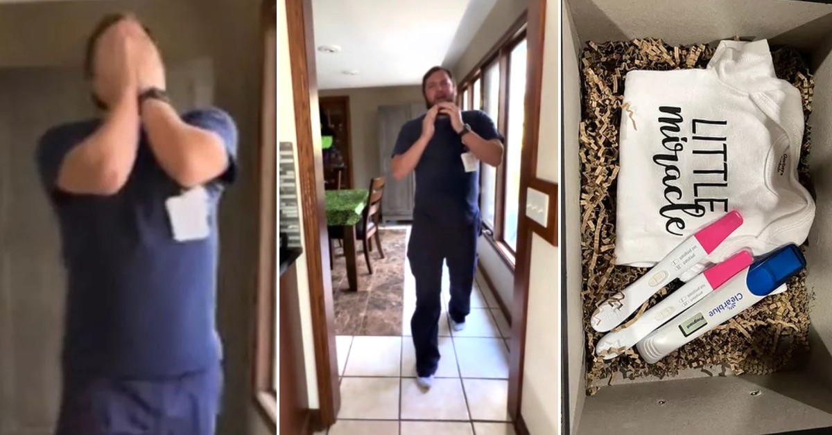 Џејкоб Бек не можеше да си ги задржи солзите кога неговата сакана Лорен му откри дека е бремена. Во видеото кое има милиони прегледи на TikTok, тој се враќа дома од работа и ги гледа позитивните тестови заедно со боди на коешто пишува: „Мало чудо“. Погледнете ја неговата реакција: