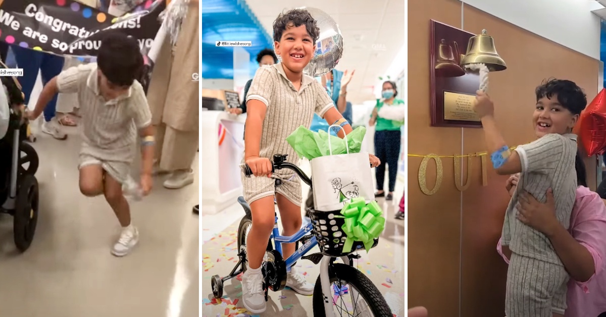 Храброто момче сега прослави со танц и заѕвони на победничкото ѕвонче во болницата, каде беше дочекан од неговото семејство.