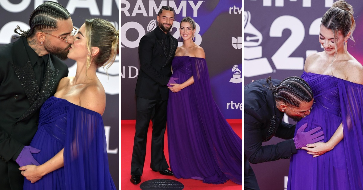 Малума ѝ го бакнува трудничкото стомаче на девојката на црвениот тепих на „Latin Grammy Awards“