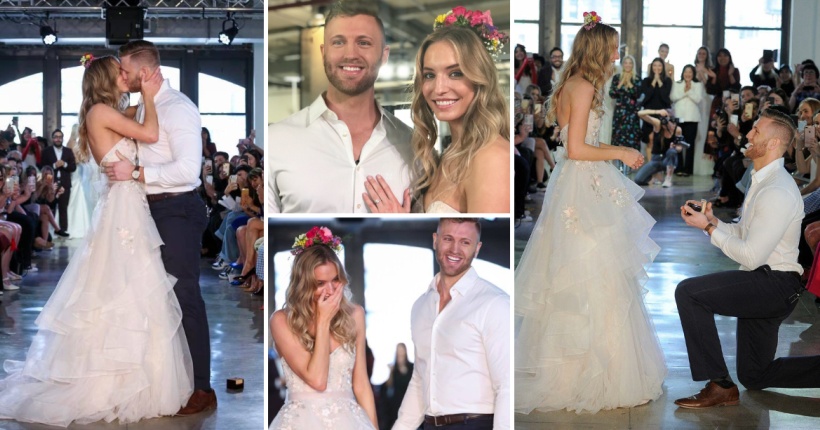 Атрактивната манекенка доби предлог за брак од своето момче додека дефилираше на модната писта на невестинска ревија.