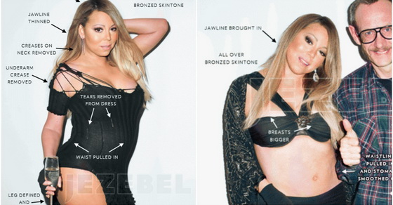 Овој пат на мета е Мараја Кери, пејачката која изминатиов период редовно е критикувана зашто презентира пред јавноста нереална слика за себе. Женскиот сајт Jezebel стигна до оригиналните фотографии од фотосесија на Мараја со контроверзниот Тери Ричардсон пред тие да бидат дигитално обработени.