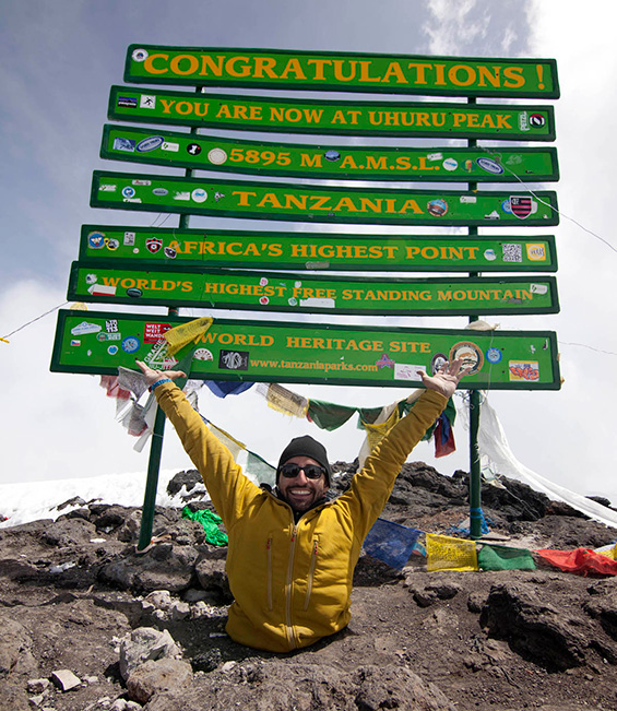 Седум дена 31-годишниот Канаѓанец и неговите пријатели и поддржувачи се искачувале за да стигнат на Кибо, највисокиот врв на Килиманџаро, кој се наоѓа на 5.895 метри надморска височина.