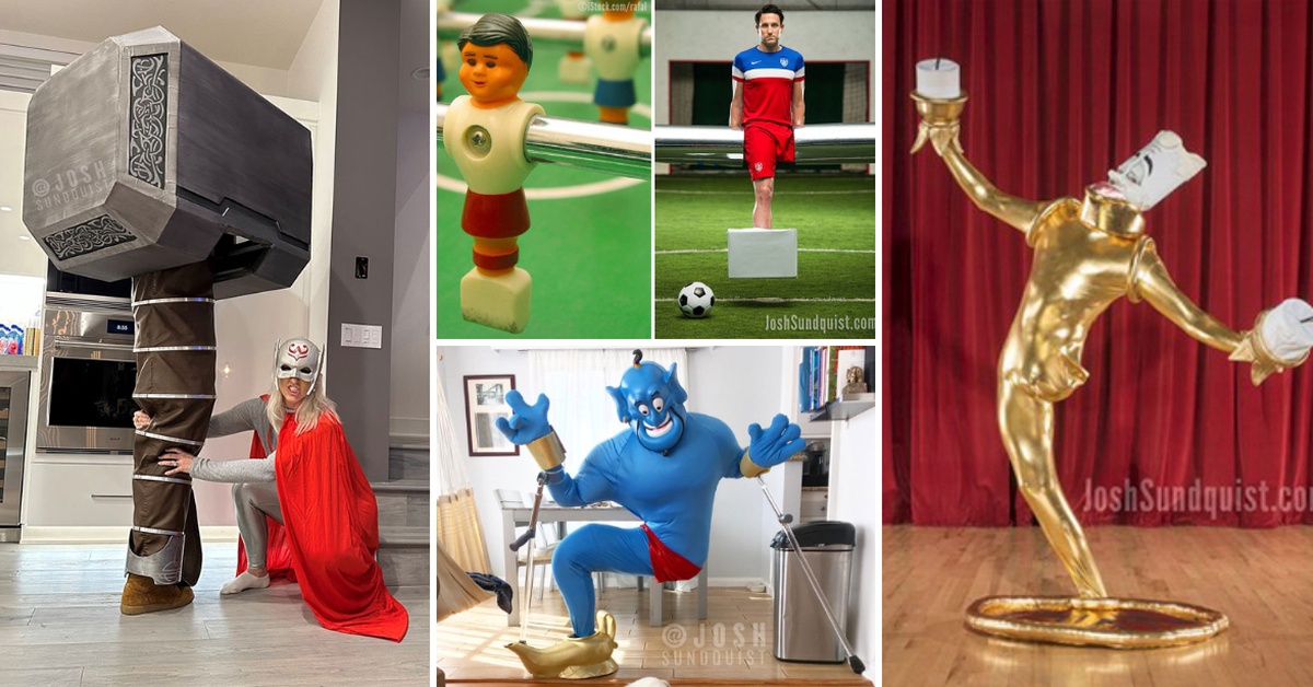 Џош Сандквист не престанува да одушевува. 38-годишниот параолимпиец, кој ја изгуби едната нога поради рак, секоја година смислува нова креативна маска за Халовин.
