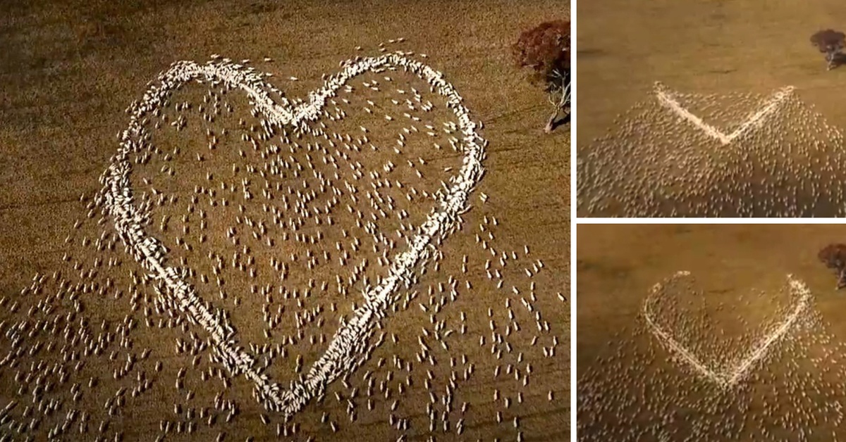 Бен Џексон стратешки им постави храна на овците и направи огромно срце, а неверојатниот момент беше снимен со дрон. Тој вели дека се надева дека неговата тетка Деб ќе може да го види срцето од рајот.