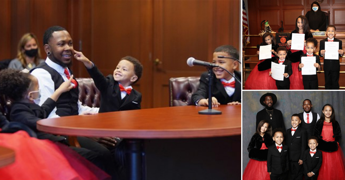 Маж посвои пет дечиња од исто семејство за тие да не бидат разделени во различни згрижувачки семејства. Фотографиите од моментот на посвојувањето станаа хит на интернет, а тој доби многу комплименти за добрината.
