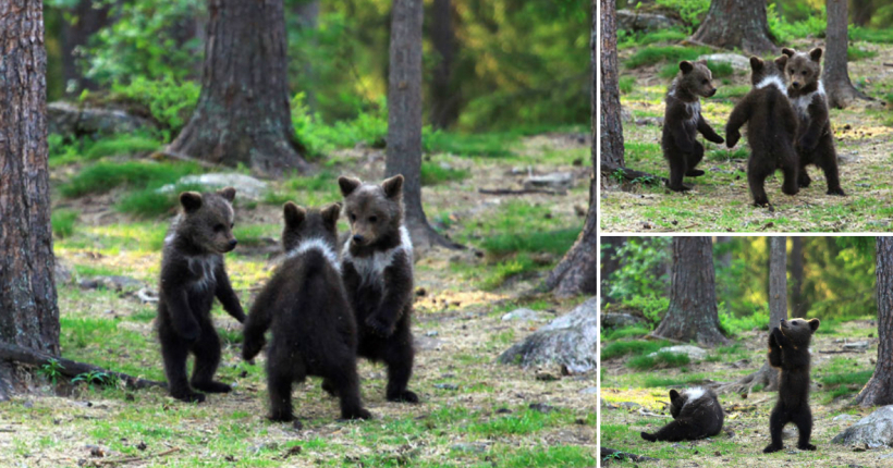На фотографиите на Валтери, направени во шума во Финска, се гледа како мечињата си играат и „танцуваат“ додека нивната мајка лежи покрај нив. Фотографот бил во засолниште на 50 метри од нив, па успеал совршено да го фотографира моментот.