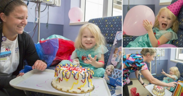 Мало девојче болно од леукемија за својот 3-ти роденден остана во болница само со мајка си, разделено од останатото семејство, кое не можело да го напушти домот за да биде таму на овој специјален ден.