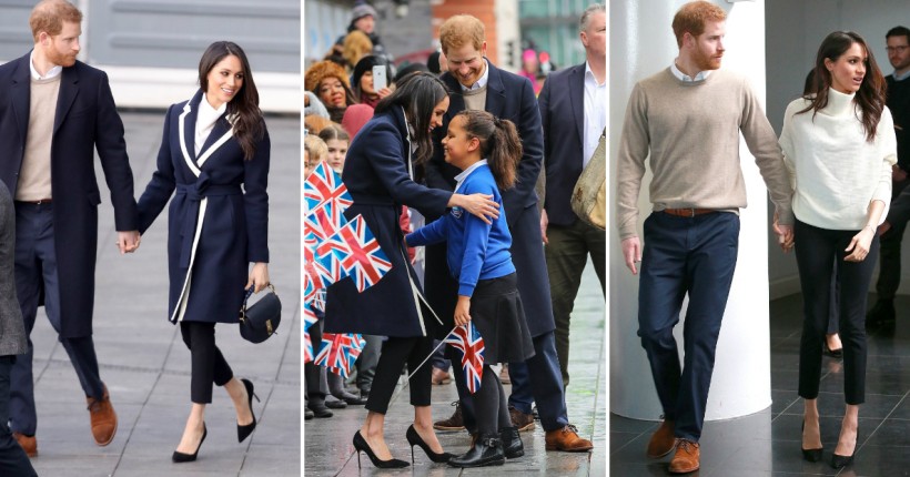 По тој повод, 33-годишниот британски принц и неговата 36-годишна вереничка беа стилски координирани. Поранешната актерка носеше палто од J. Crew, црни панталони од Alexander Wang, ролка од AllSaints, чантичка од Altuzarra и обувки од Manolo Blahnik.