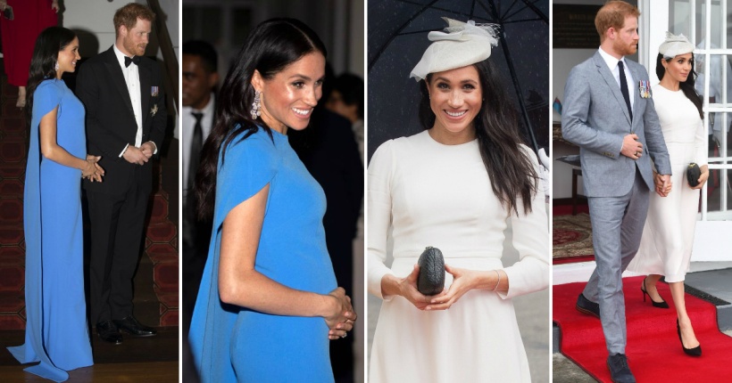 Меган Маркл го истакна трудничкото стомаче во сина креација, откако шармираше во бело за пристигнувањето на Фиџи