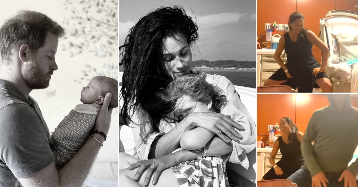 Поранешната актерка објави и две фотографии „пред и потоа“ од принцот Хари и Лилибет, како и забавно видео снимено пред породувањето.