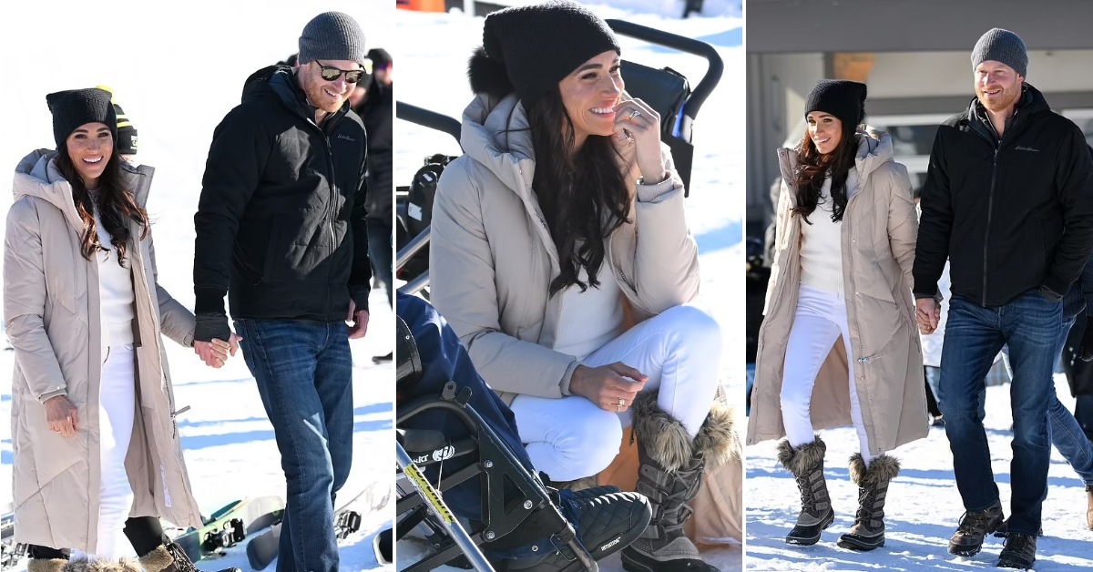 42-годишната поранешна актерка носеше бела модна комбинација и зимска јакна додека шеташе на снежната планина со 39-годишниот принц. Парот се сретна со спортисти и инструктури по адаптивни спортови.