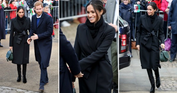 Меган Маркл со модерен стајлинг и шармантна насмевка ги освојуваше обожавателите кои ја пречекаа неа и принцот Хари во Велс.