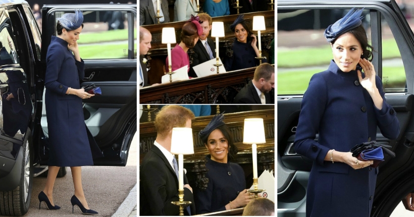 37-годишната војвотка од Сасекс носеше отмена креација од Живанши во темносина нијанса и шапка од Ноел Стјуарт.