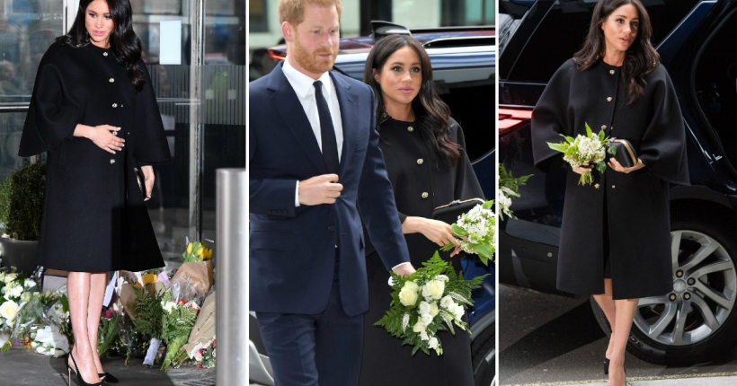 37-годишната војвотка од Сасекс, која следниот месец ќе го роди првото дете, носеше црна комбинација.