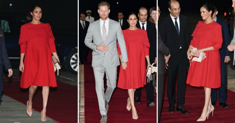 Меган Маркл во црвен фустан од Валентино ја започна кралската турнеја со принцот Хари во Мароко