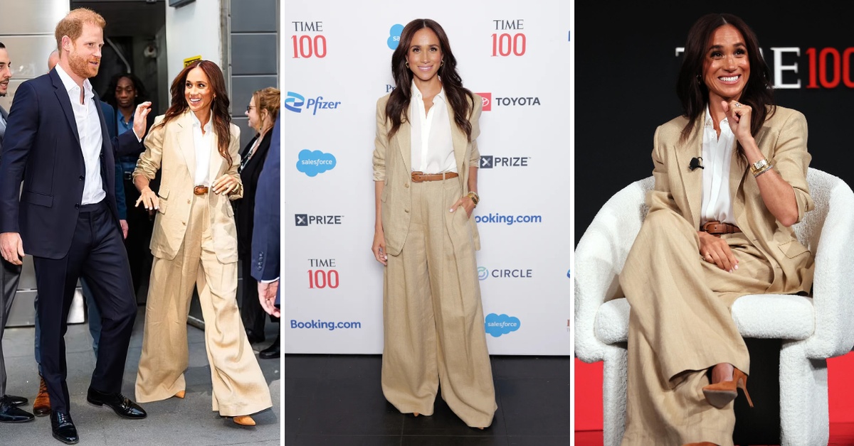 Низ улиците во Големото јаболко, тие беа фотографирани во костуми. Меган носеше ленен костум од Ралф Лорен, додека Хари избра класично тегет одело.