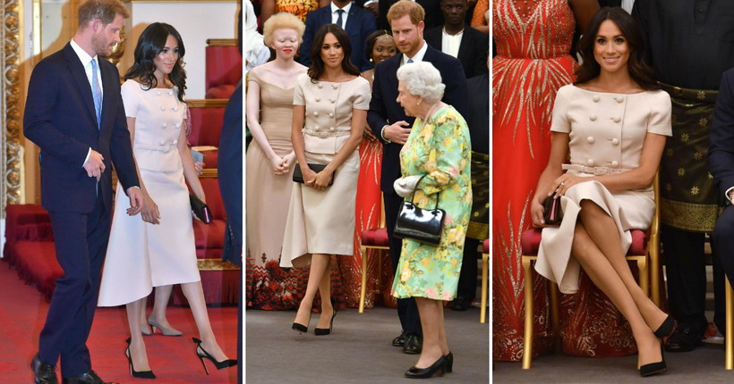 Меган Маркл во розова креација од Прада со принцот Хари и кралицата Елизабета во Бакингемската палата