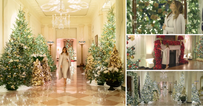 Празнична атмосфера завладеа во Белата куќа. Меланија Трамп преку видео и фотографии ги презентираше божиќните и новогодишните декорации во претседателскиот дом.