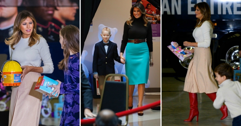 Госпоѓа Трамп ширеше празнично расположение меѓу дечиња на воени лица и ја поттикнуваше нивната дарежливост. На настанот „Toys For Tots“, таа им помагаше на малите деца да сортираат играчки и да креираат божиќни честитки. Создадените пакетчиња ќе им бидат разделени на сиромашни деца за претстојните празници.