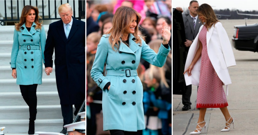 Претходно, Меланија и Доналд со синот Барон беа во нивната вила Мар-а-Лаго во Флорида. За посетата Меланија избра совршен пролетен стајлинг, кој вклучуваше фустан од Азедин Алаја, обувки од Кристијан Лобутин и бело палто.