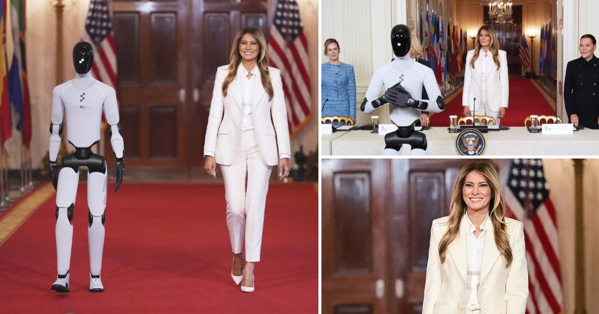 Меланија Трамп со несекојдневен придружник чекореше на црвениот тепих во Белата куќа. Првата дама на САД со хуманоиден робот пристигна на средбата со учесничките на глобалниот самит со кој ја лансираше иницијативата „Fostering the Future Together“.