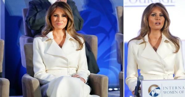 Првата дама на САД, која носеше бел палто-фустан и обувки од Кристијан Лобутин, одржа говор во кој потенцира: „Заедно мора да објавиме дека ерата во која беше дозволена бруталност кон жените и децата е завршена.“