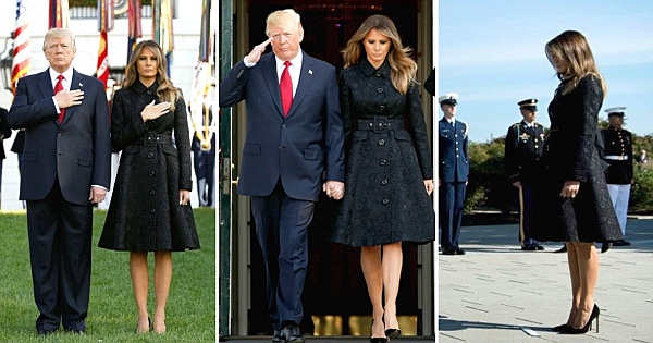Деновиве, Меланија беше фотографирана во полежерен стајлинг покрај својот сопруг.