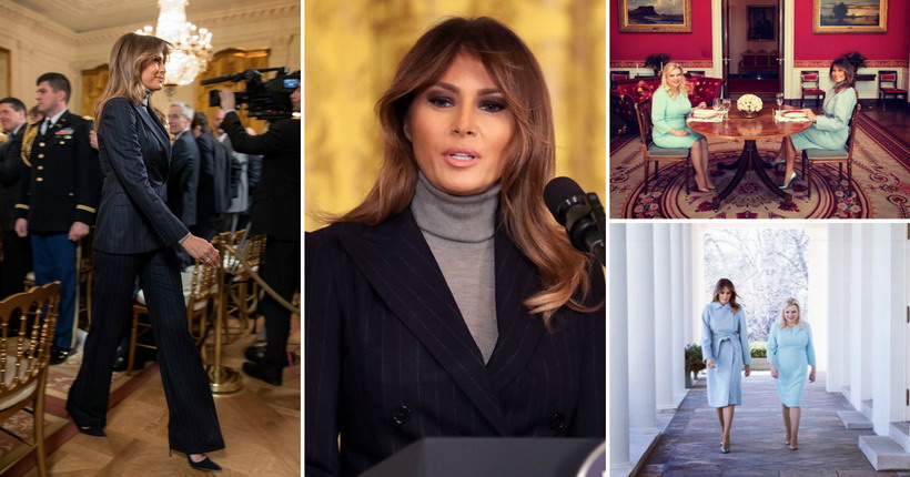 Доналд и Меланија Трамп ги поканија во Белата куќа израелскиот премиер Бенџамин Нетанјаху и неговата сопруга Сара. За официјалната средба и двете дами избраа комбинации во светлосина боја и обувки од Кристијан Лобутин.