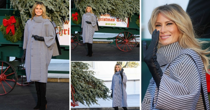 Одржувајќи ја традицијата како Прва дама, Меланија ја пречека големата елка која ќе биде меѓу празничните украси во претседателскиот дом. Дрвото од 5,5 метри беше однесено со кочија.
