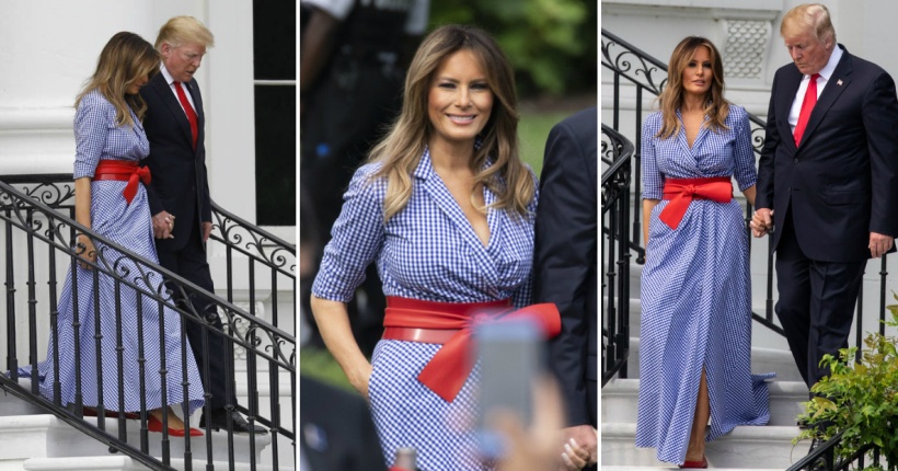 За оваа пригода, 48-годишната прва дама на САД избра долг кариран фустан од Ралф Лорен, кој го надополни со црвен колан на половината од Александар Меквин. Во својот стајлинг Меланија додаде црвени балетанки од Кристијан Лобутин.
