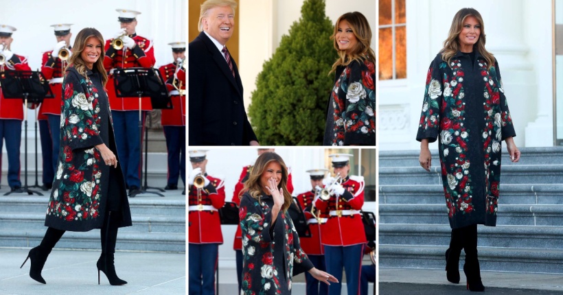 49-годишната прва дама на САД шармираше во палто со цветови од Долче и Габана, кое чини 2.350 долари. Својот моден избор, Меланија го искомбинира со црни чизми од Кристијан Лобутин.