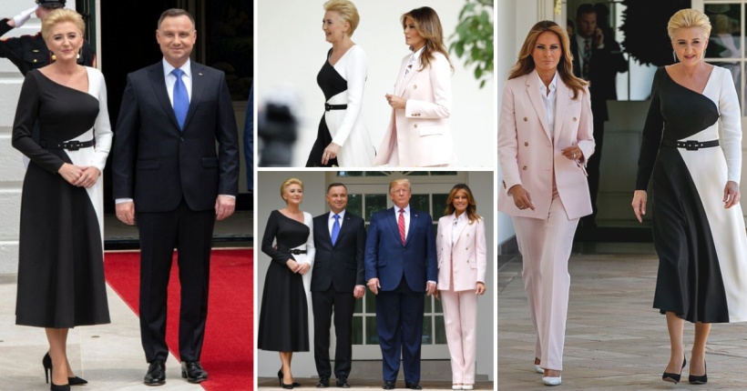За средбата, Меланија шармираше во розов костум од Келвин Клајн, кој го искомбинира со бела кошула и салонки со потпис на Маноло Бланик, додека полската Прва дама изгледаше елегантно во црно-бела креација.