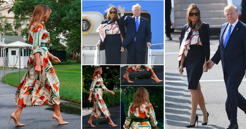 Првата дама на САД ја напушти Белата куќа во фустан со принт инспириран од Лондон. Креацијата е дело на модната куќа Гучи.