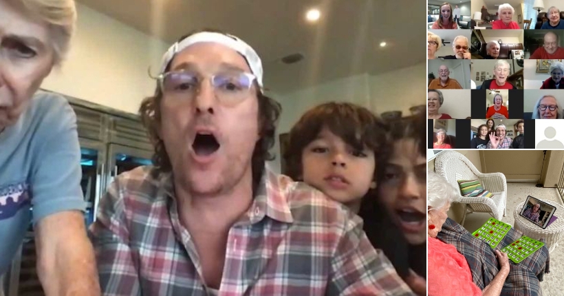 50-годишниот актер ги забавуваше старите лица во пензионерски дом во Тексас, организирајќи им виртуелно бинго преку видео врска и доби комплименти од целиот свет. Тој им кажуваше броеви кои тие ги обојуваат и се радуваше заедно со нив. Метју беше во друштво на неговите деца, сопругата Камила Алвес и мајка си.