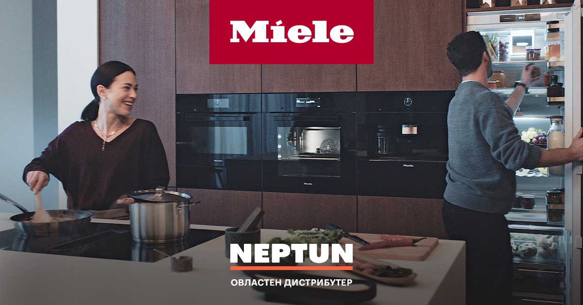 Од неодамна оваа фасцинантна технологија и премиум производи може да се најдат и во Нептун, кој е овластен дистрибутер на Miele. Она по што ќе ги препознаете Miele апаратите се чисти линии, безвремена елеганција, внимателно координирани линии и опции за бои, за да одговараат на широк спектар на дизајни на кујнскиот мебел. Што се однесува до изработката, Miele и тука останува доследен на својот основен принцип; Апаратите и уредите ги отсликува богатството на иновативни функции, прецизност и големо внимание посветено на деталите.