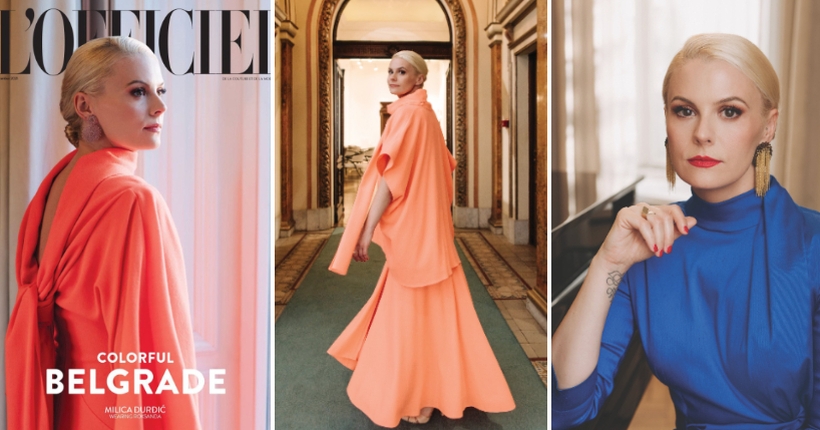На корицата, Милица носи креација од светската дизајнерка со српско потекло Роксанда Илинчиќ.