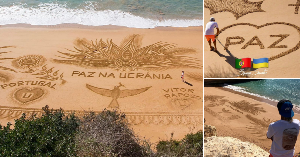 Артистот од Португалија преку уметност на песок изрази солидарност со луѓето кои бегаат од татковината и повика на мир.